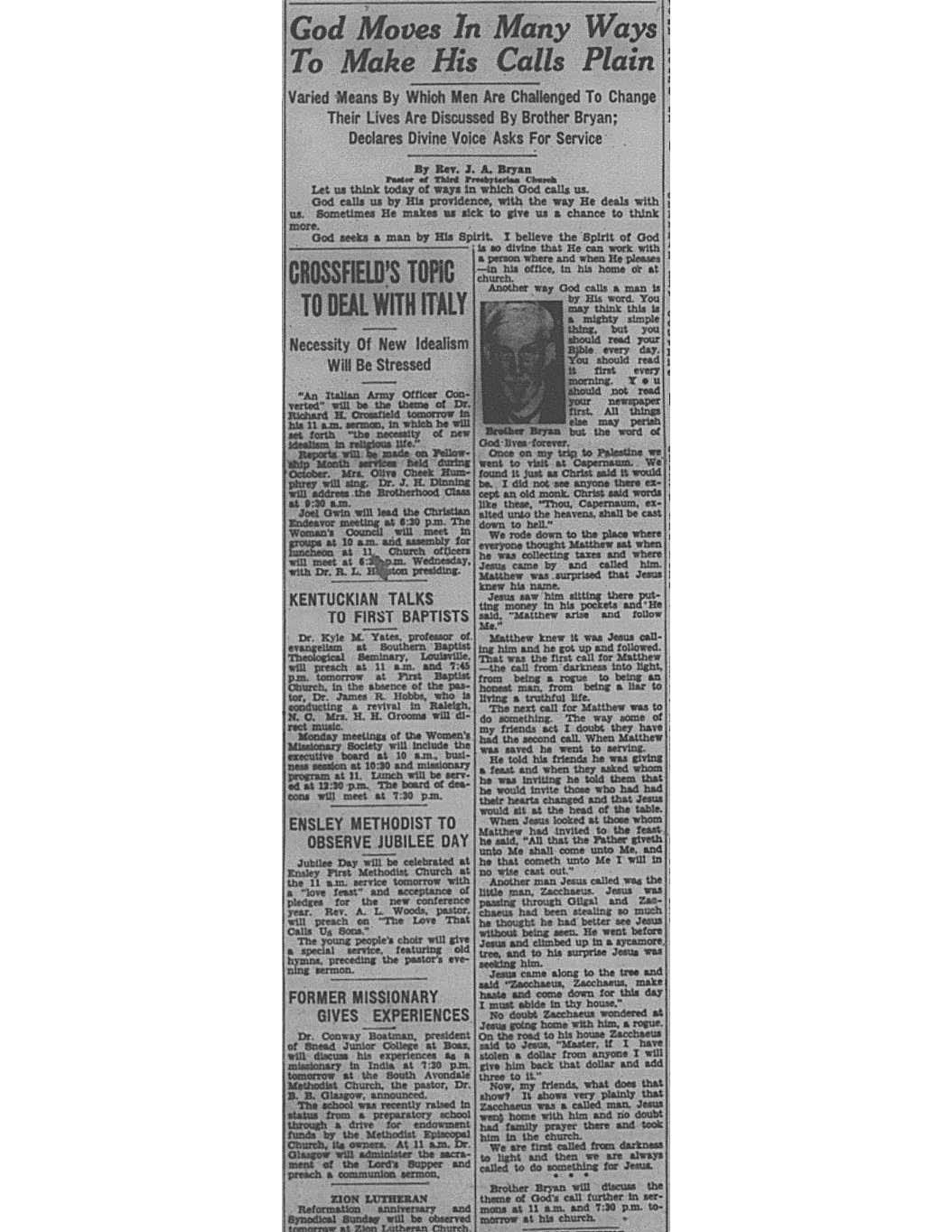 Birmingham Post-Herald | November 2, 1935 God Moves in Many Ways To Make His Calls Plain Notes: