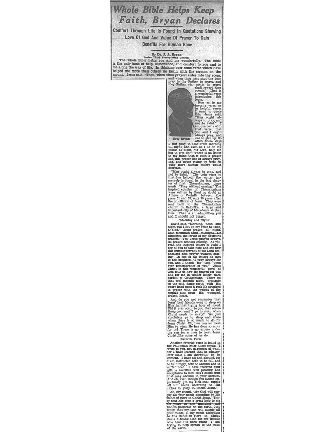 Birmingham Post-Herald | November 4, 1933 Whole Bible Helps Keep Faith