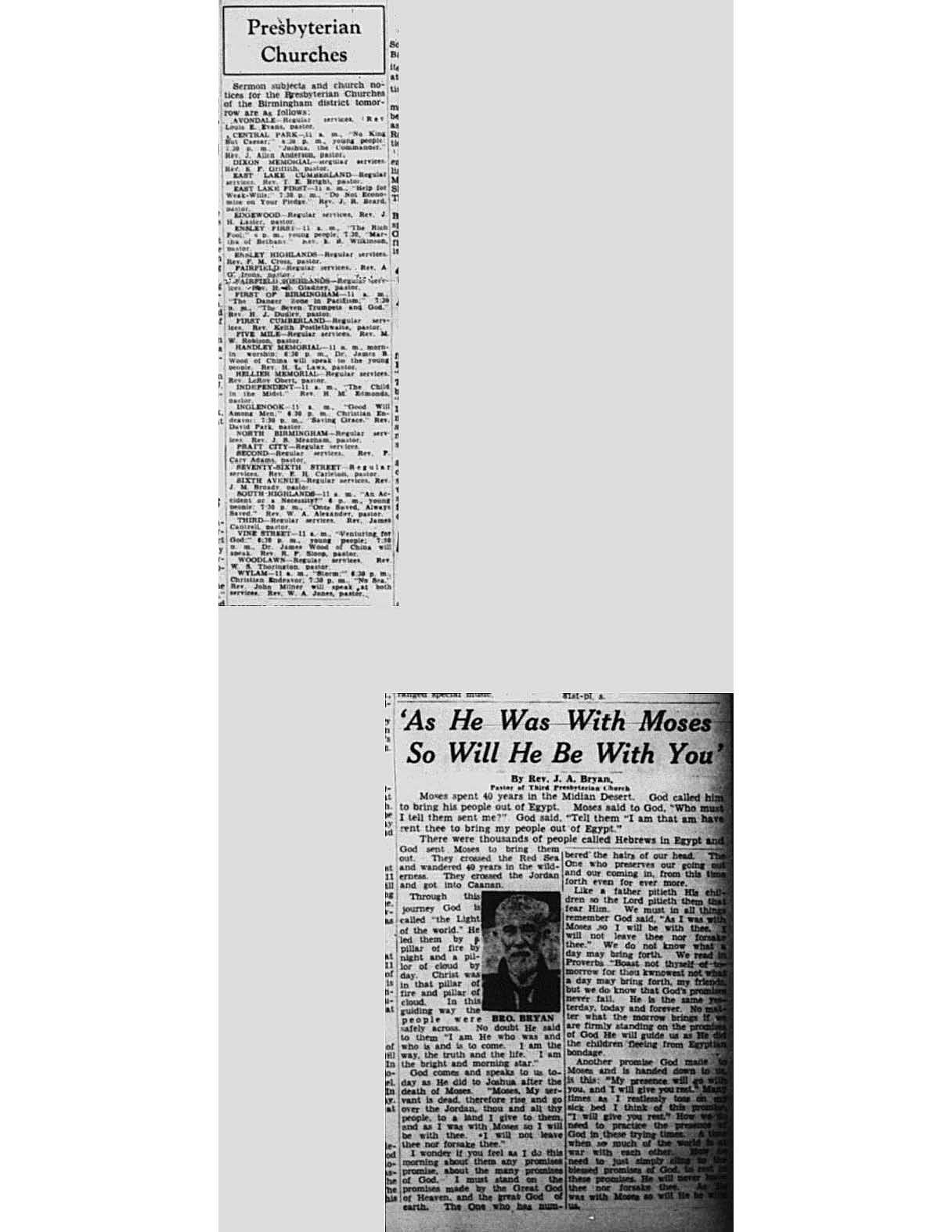 Birmingham Post-Herald | November 9, 1940 As He Was With Moses So Will He Be With You
