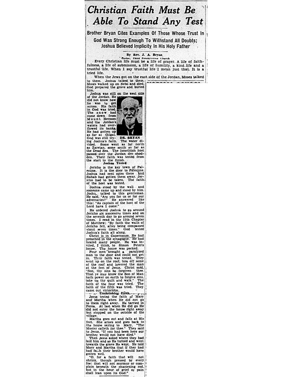 Birmingham Post-Herald | October 15, 1938 Christian Faith Must Be Able To Stand Any Test