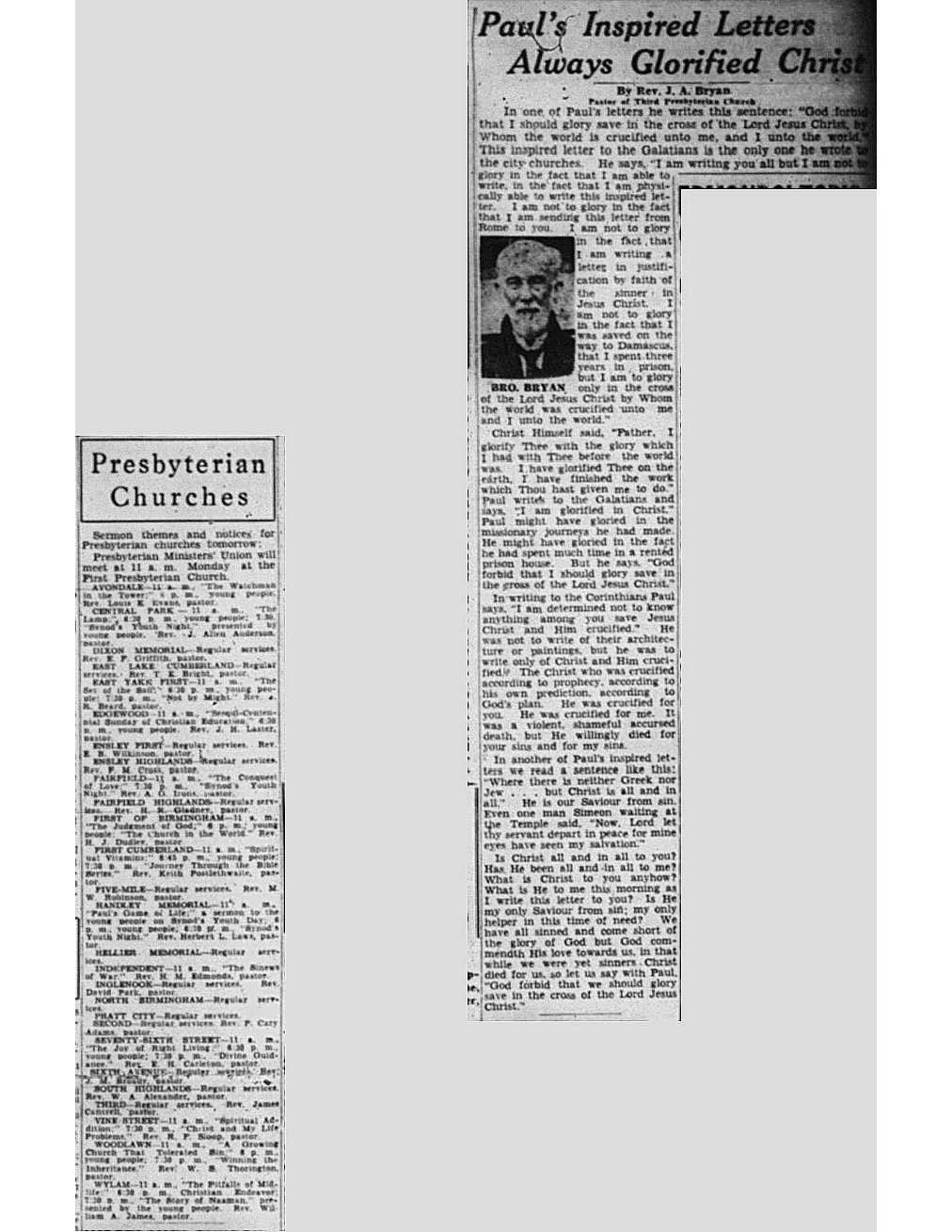Birmingham Post-Herald | October 19, 1940 Paul’s Inspired Letters Always Glorified Christ Notes: