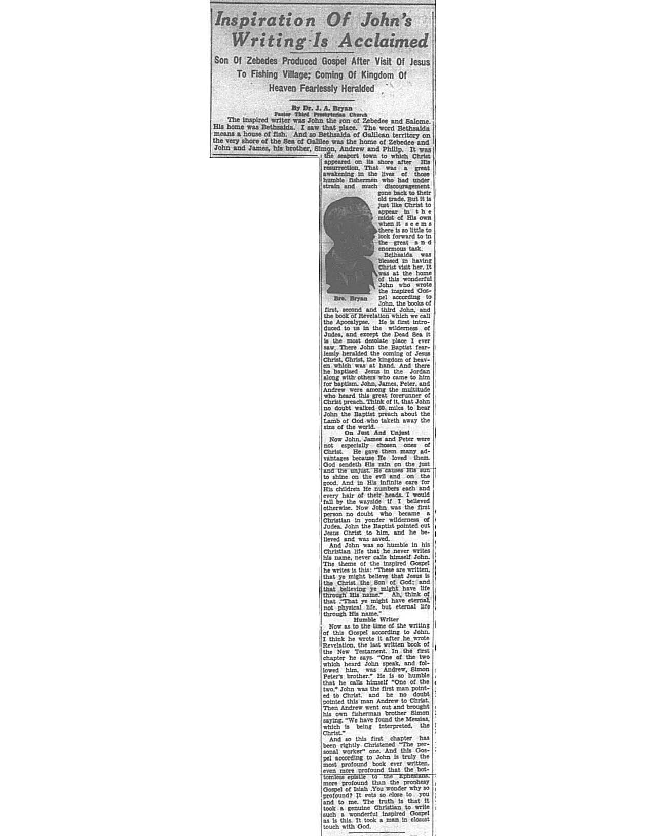 Birmingham Post-Herald | October 21, 1933 Inspiration of John’s Writing Is Acclaimed