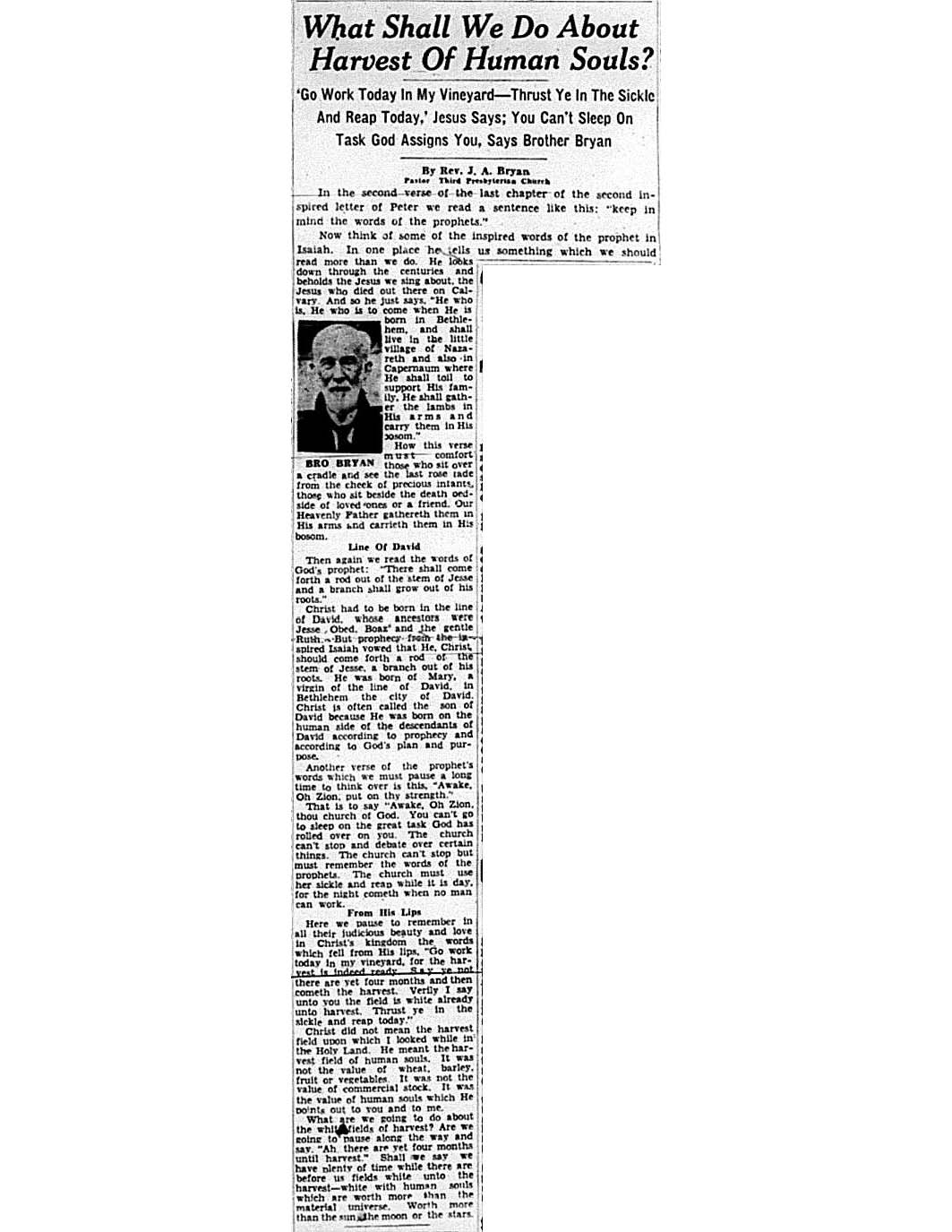 Birmingham Post-Herald | October 21, 1939 What Shall We Do About Harvest of Human Souls?