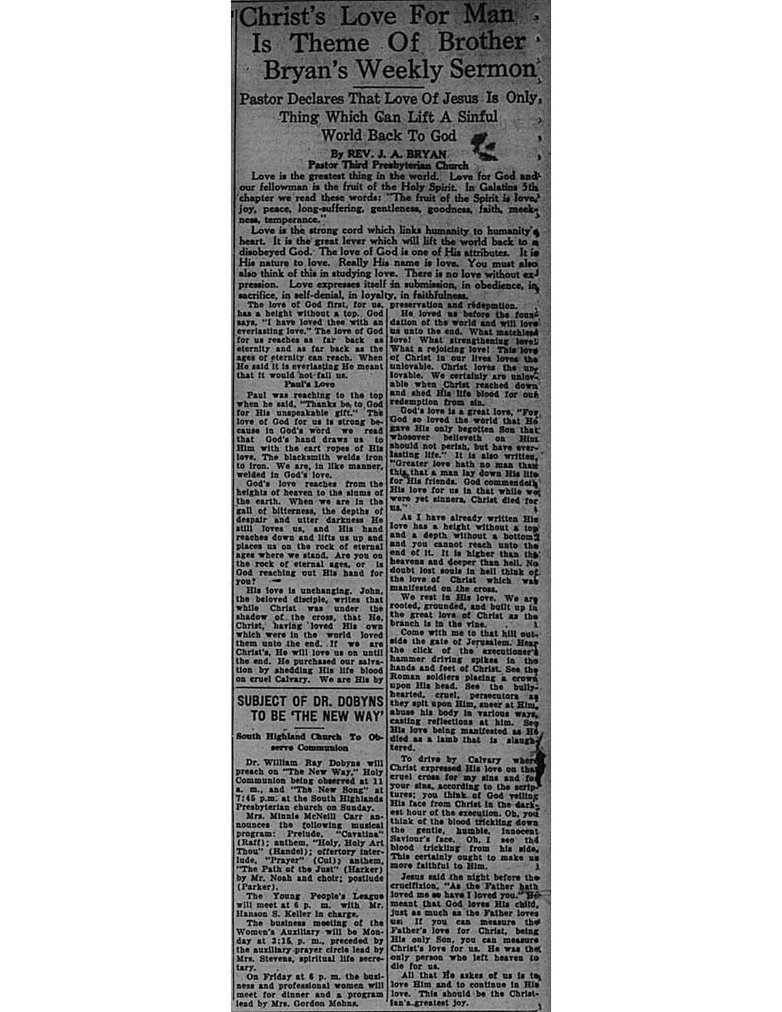 Birmingham Post-Herald | October 6, 1928 Christ’s Love For Men Is Theme