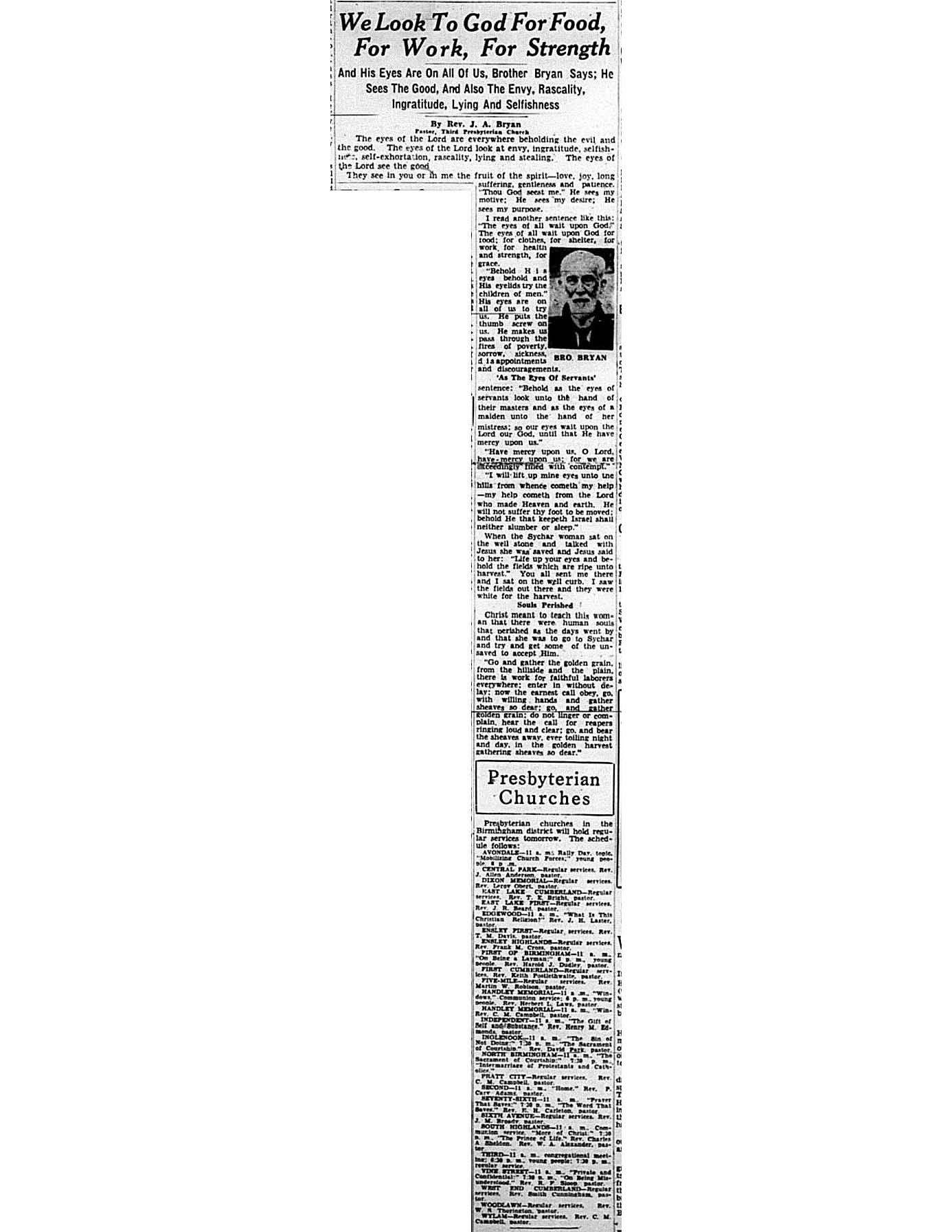 Birmingham Post-Herald | October 7, 1939 “We Look To God For Food, For Work, For Strength” Notes:
