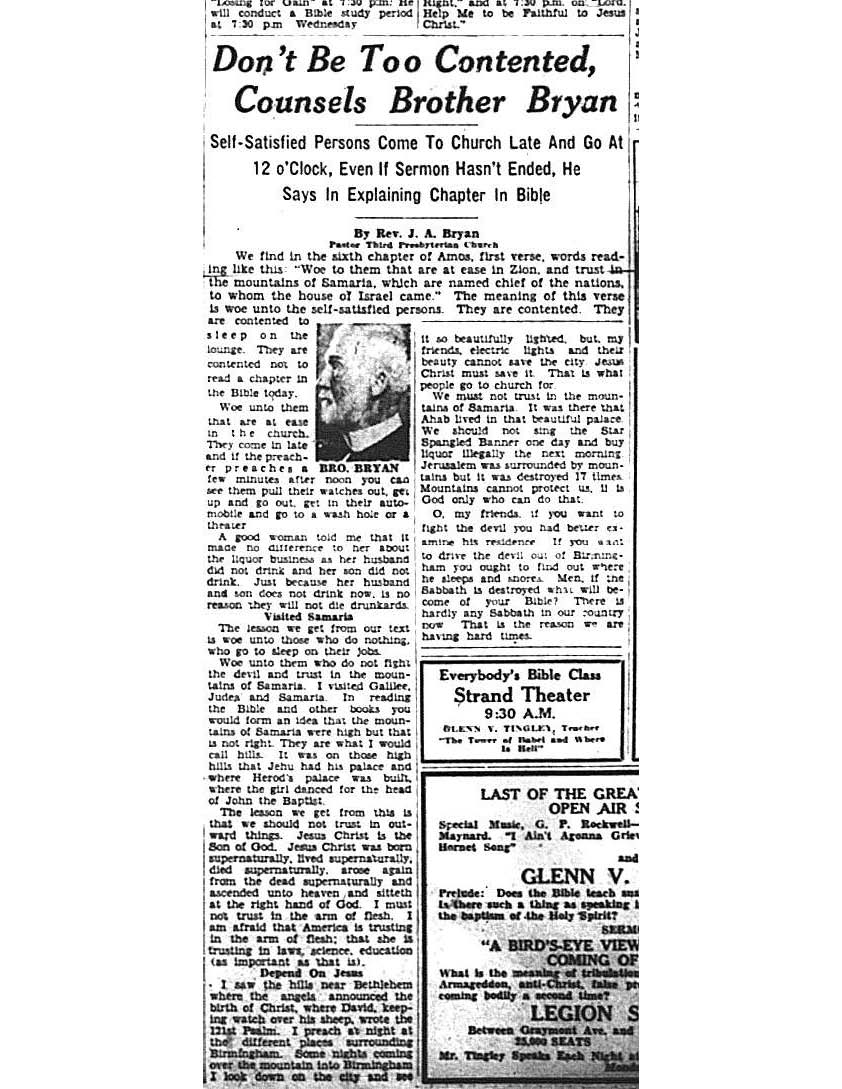 Birmingham Post-Herald | September 1, 1934 Don’t Be Too Contented Notes: