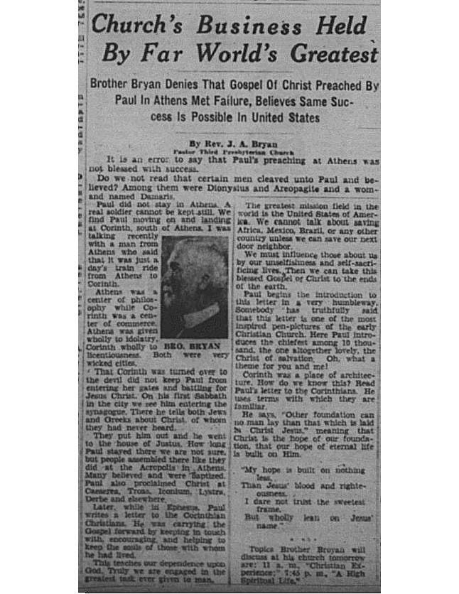 Birmingham Post-Herald | September 12, 1936 Church’s Business Held By Far World’s Greatest Notes: America biggest mission field