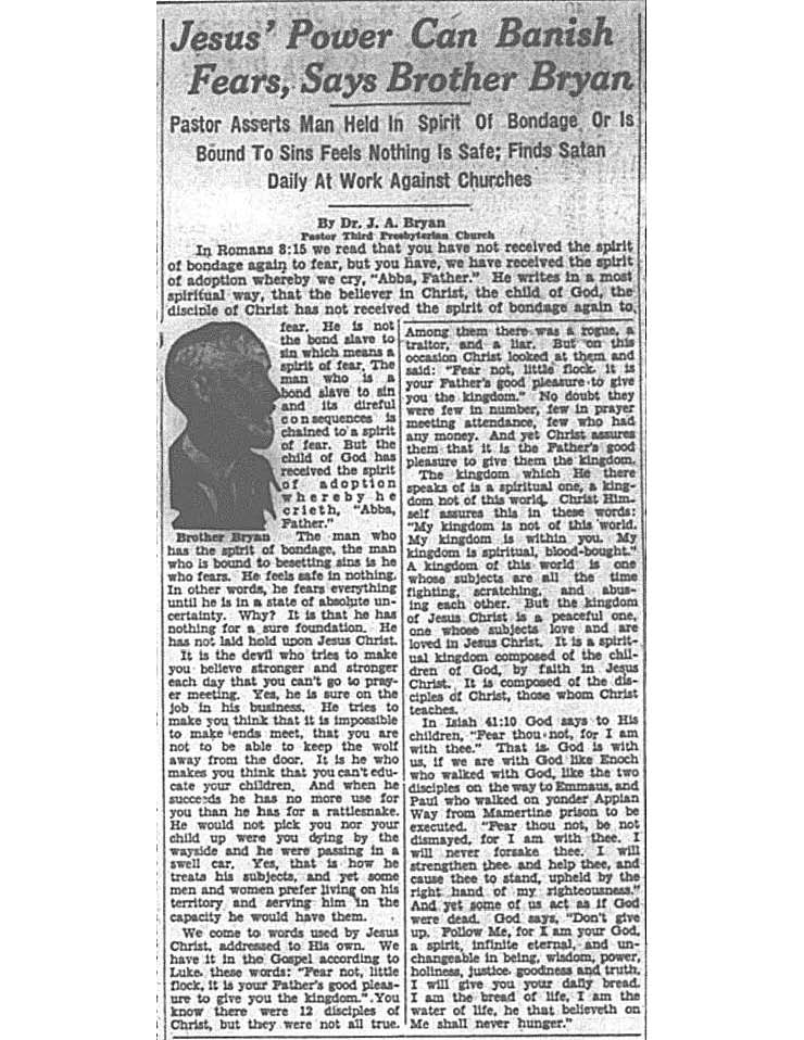 Birmingham Post-Herald | September 16, 1933 Jesus’ Power Can Banish Fears Notes: