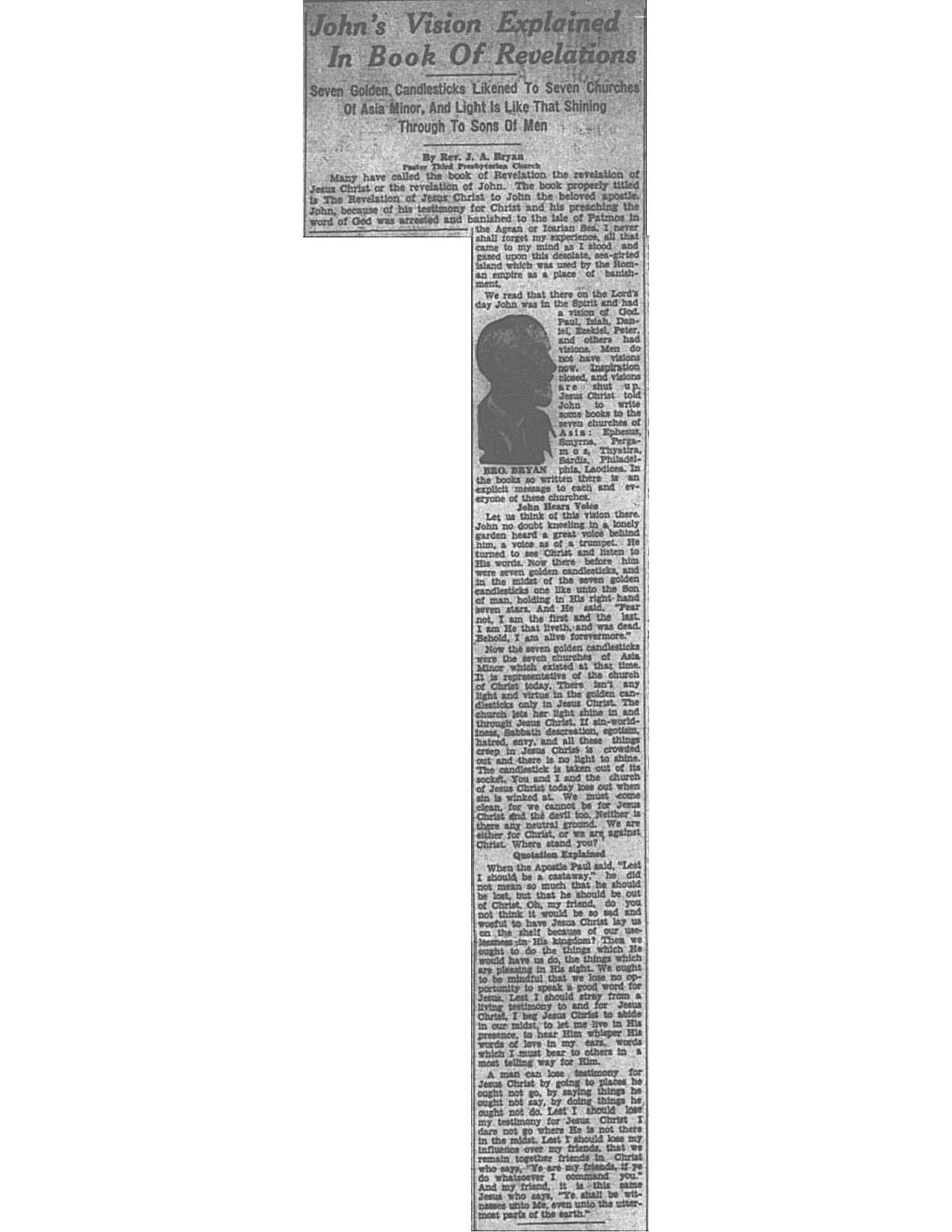 Birmingham Post-Herald | September 23, 1933 John’s Vision Explained In Book of Revelations Notes: