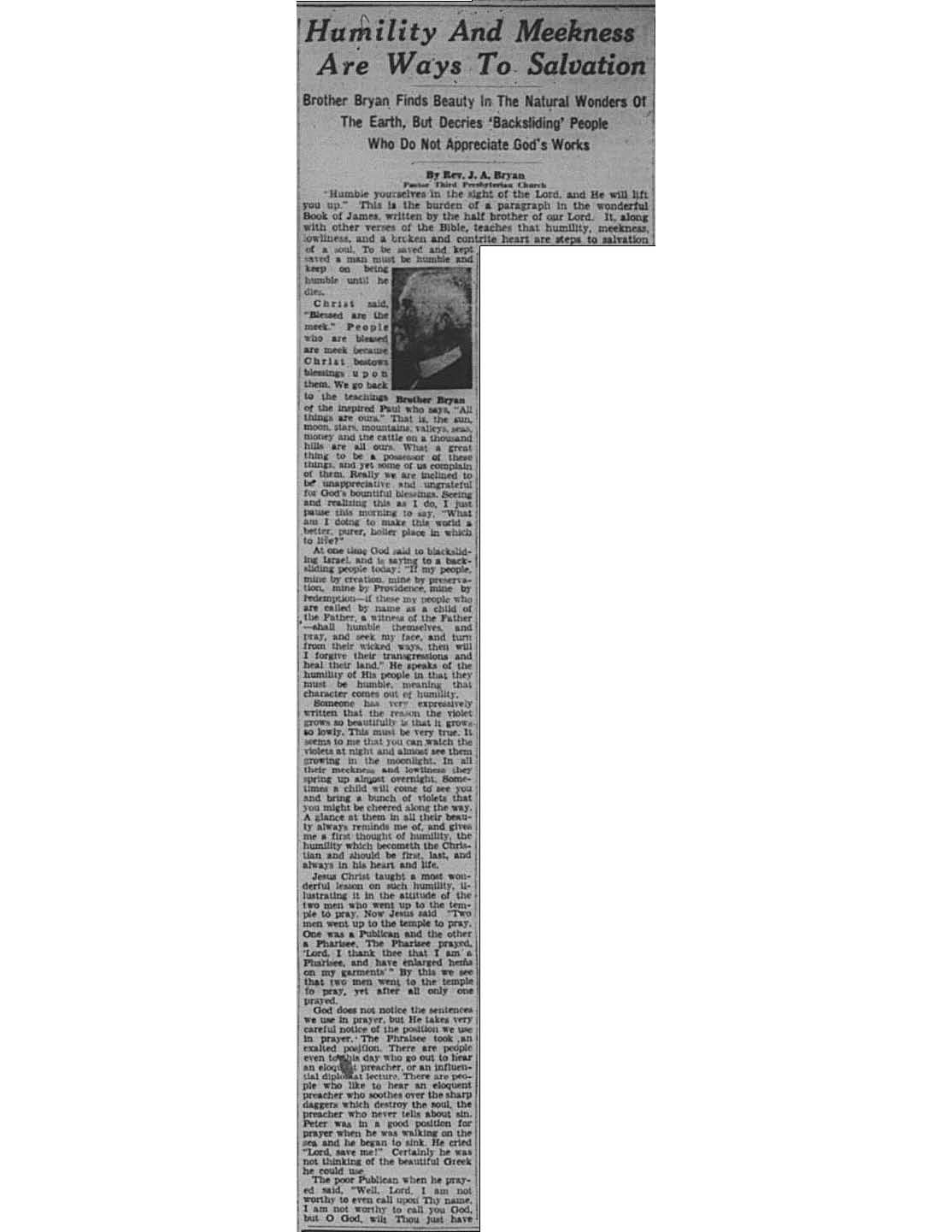 Birmingham Post-Herald | September 26, 1936 Humility and Meekness Are Ways To Salvation Notes: