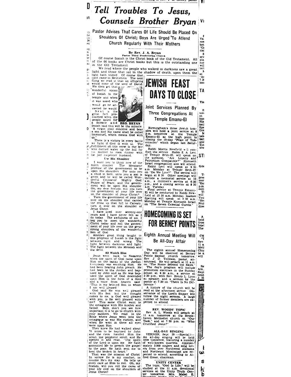 Birmingham Post-Herald | September 29, 1934 Tell Troubles To Jesus