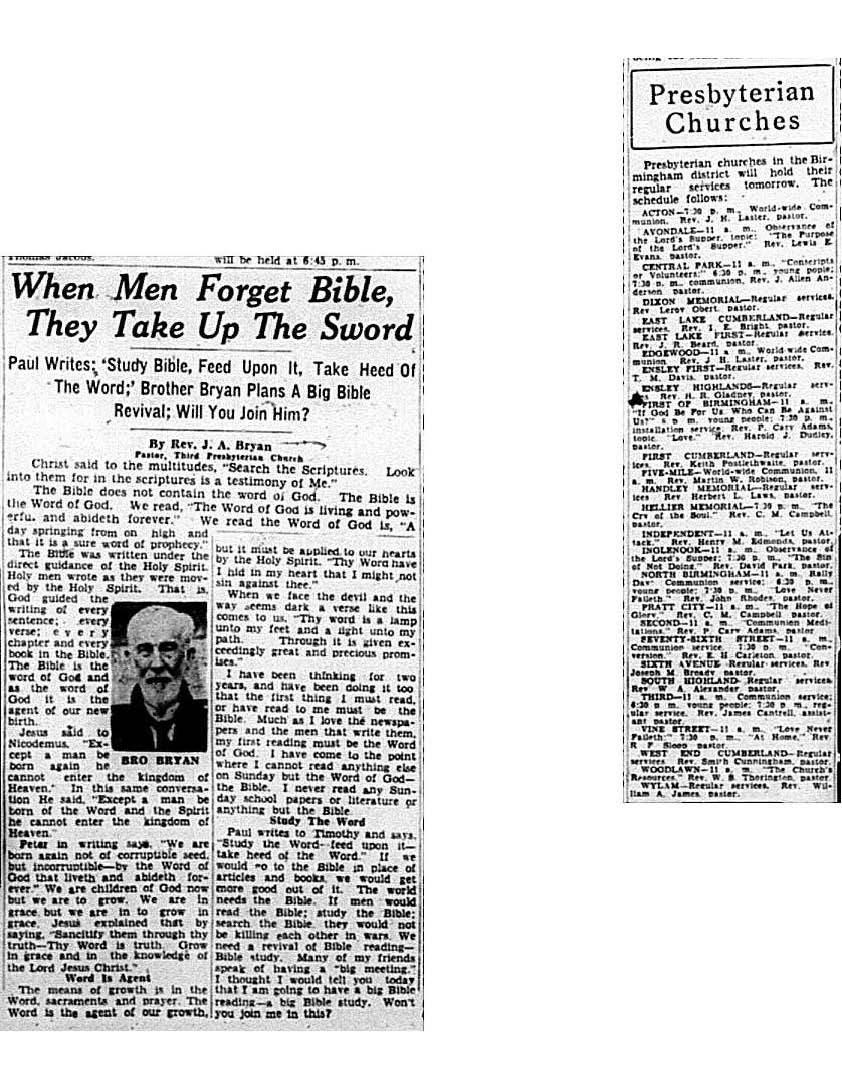 Birmingham Post-Herald | September 30, 1939 “When Men Forget Bible, They Take Up The Sword” Notes: